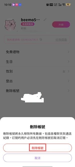 3、点击之后,会弹出确认窗口,用户仅需再次点击“删除账号”选项,就能成功删除账号。
