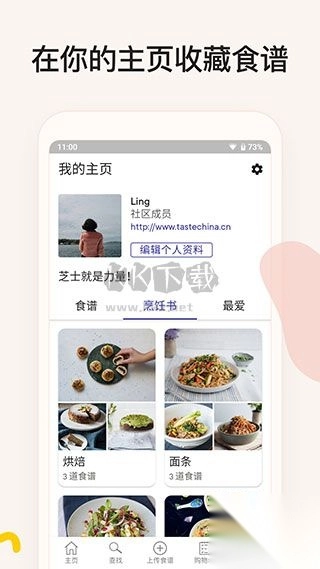 6、进入主页,用户可以看到自己所收藏的食谱与美食美文之类的。
