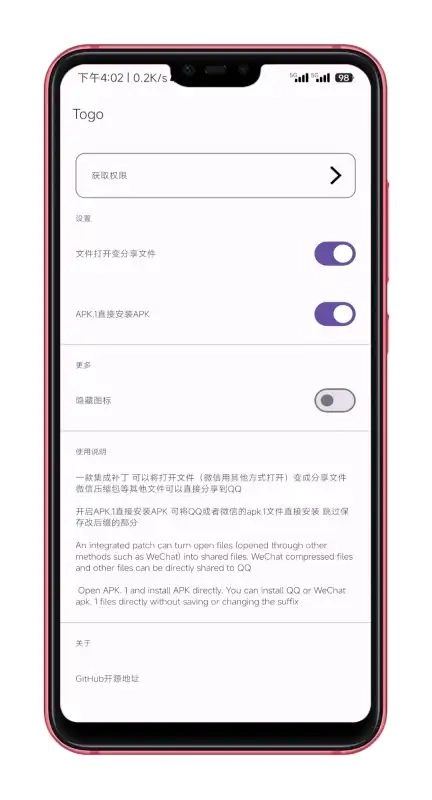 Togo集成工具是一款专门为安卓用户打造的便捷安装辅助软件。此工具可直接识别并安装经由社交平台分享的APK.1格式安装包,无需手动修改文件后缀,免去了这一繁琐步骤。对于不太熟悉手机操作的用户而言,仅需点击接收到的安装文件,软件便会自动完成后续的安装准备事宜,极大地简化了应用程序的安装流程。