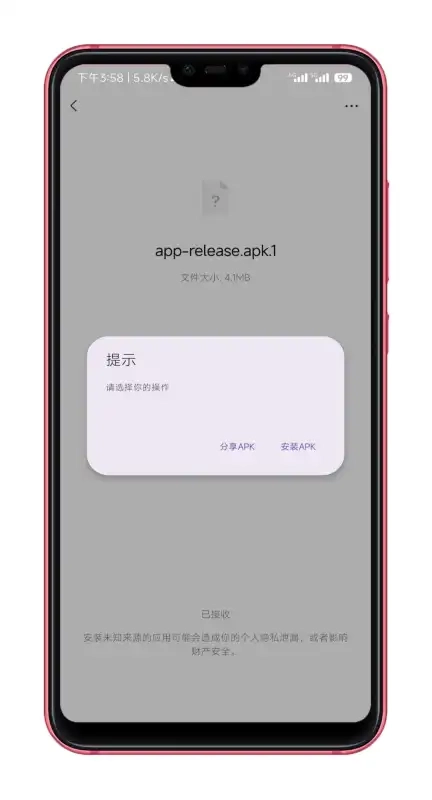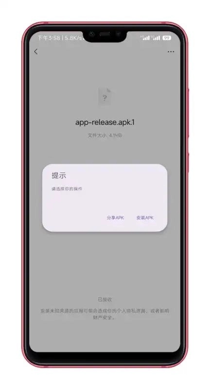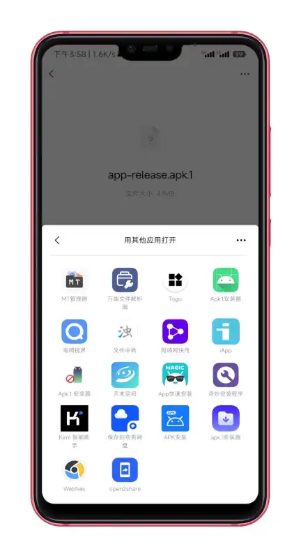 4、通过微信接收他人发送的APK.1格式安装包