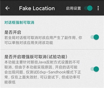 第二步,打开对话框取消修复版,选择Fake Location,如图所示按钮打开