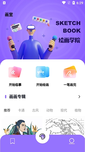 2. 绘画学院:提供临摹、绘画及一笔画完等支持,让你轻松踏上绘画学习之路。