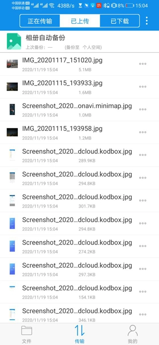 KODBOX具备相册自动备份功能,能把手机里的多媒体文件自动备份至云端。在软件中,通过点击【我的】>【自动备份】,完成备份设置后,就能开启相册备份功能。开启此功能后,可在传输页面查看相册备份的进度。