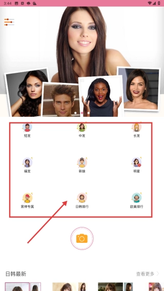 1、进入首页,选择发型分类如日韩排行 ,浏览对应风格发型案例,找到心仪款式。