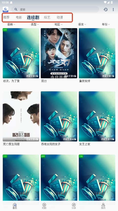 2. 借助电影、电视剧、动漫、综艺等类别,能快速找到想看的内容。