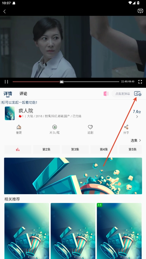 2、进入播放页面,点击视频右上角的TV图标