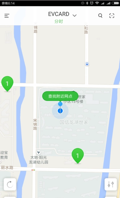 1、打开手机evcard,在附近查找网点,选择其中一个。