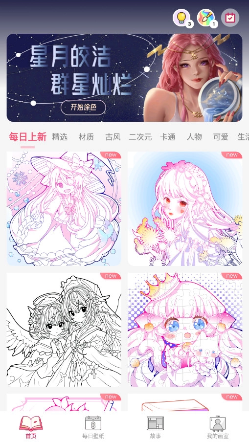 高级配色搭配自定义颜色,还有海量梦幻治愈的绘画线稿等你来,在这里你能随心进行上色与涂鸦!