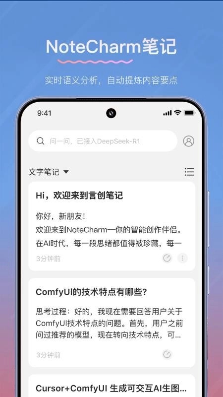 NoteCharm软件,是一款专注于智能笔记记录的专业应用软件。它支持语音记录功能,无论是重要的日常笔记,还是关键的会议内容,用户都能通过语音实时记录,轻松捕捉内容要点。不仅如此,该软件还具备实时语音转录能力,并能自动分析语义,精准提取关键要点。