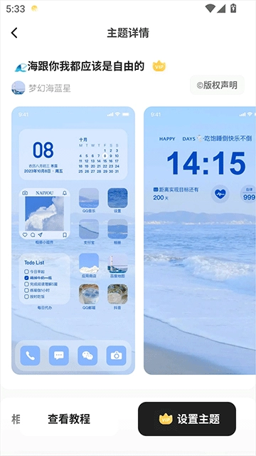 3、最后点击“设置主题”就可以了(部分主题需具备vip权限)