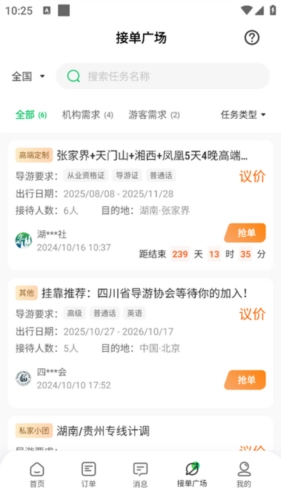2. 在接单广场可以看到形形色色的订单。
