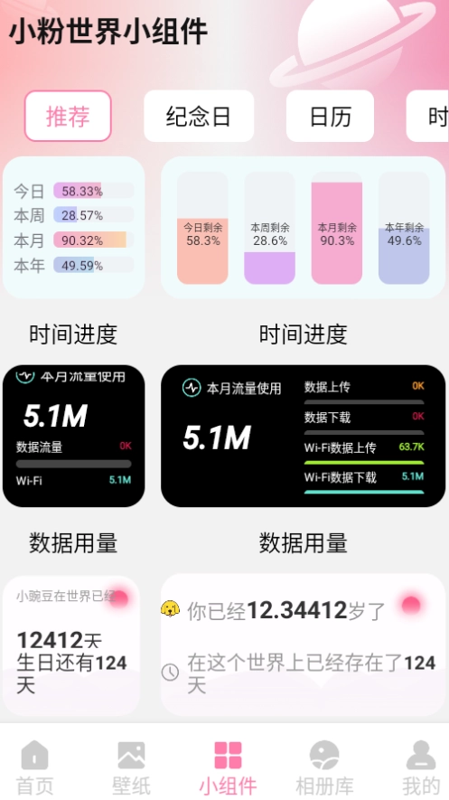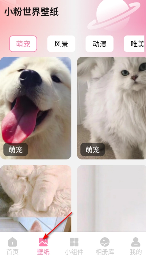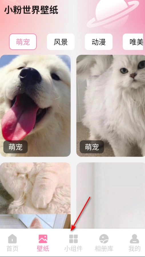 1. 打开小粉世界壁纸软件,然后点击小组件。