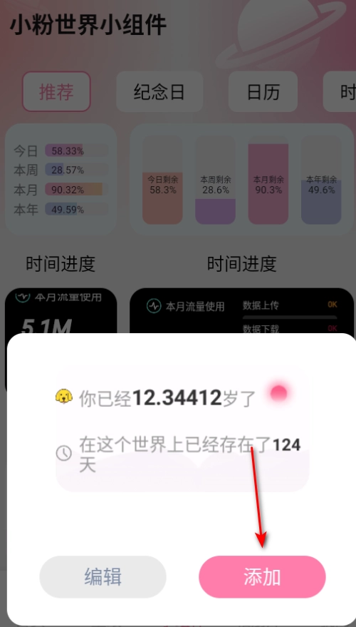 3、点击喜欢的小组件添加即可