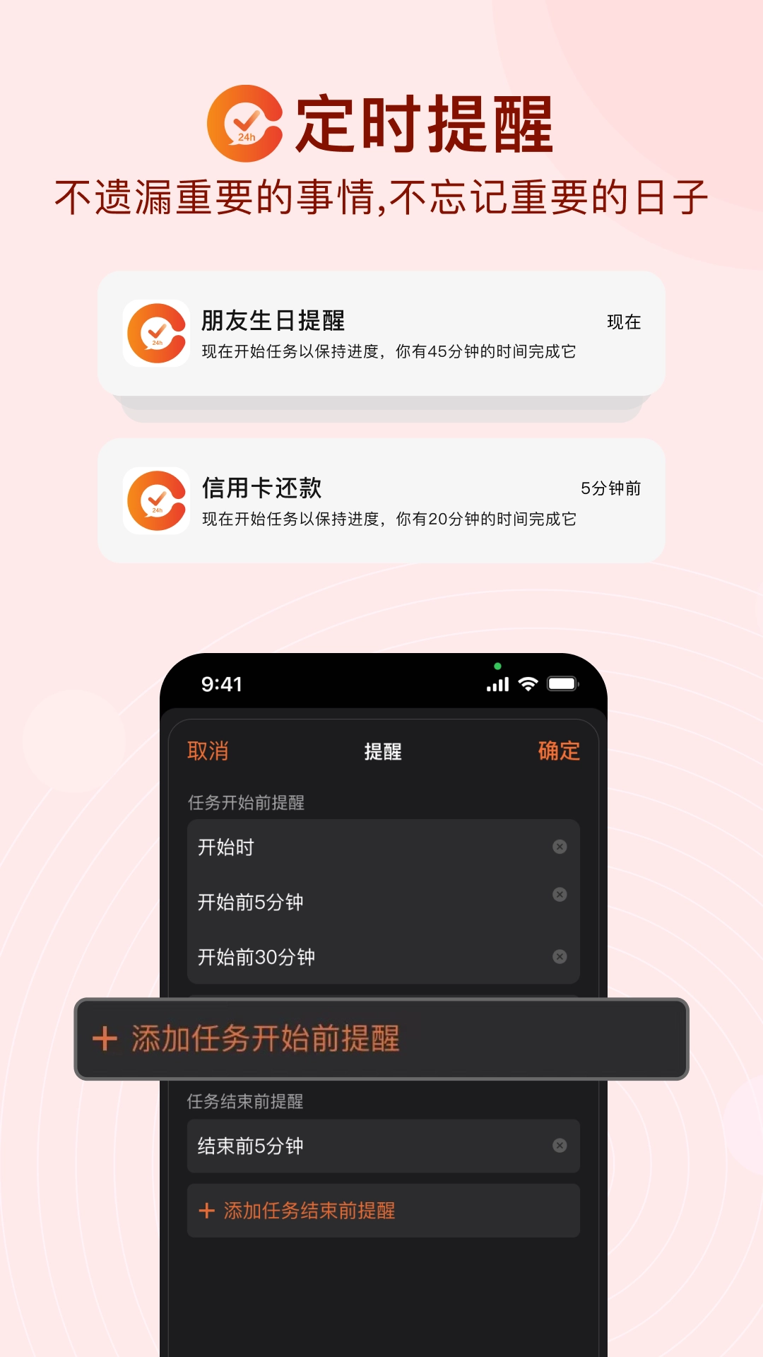 2. 具备时间提醒功能,能够给任务设置一个或多个提醒。
