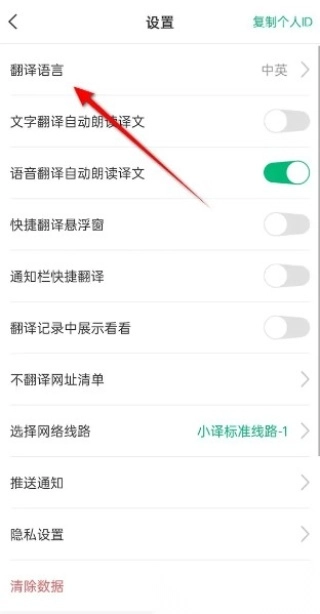 3. 接着点击“翻译语言”选项。