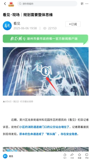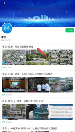 1、进入南太湖号APP后,在首页导航栏选择"看见"频道,这里汇集了各类视频资讯内容。