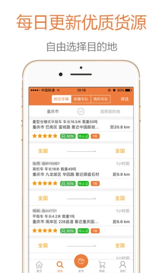 1. 货车司机寻优质货源:每日海量优质货源发布,有效降低货车司机返程空驶率,比管家还贴心。
