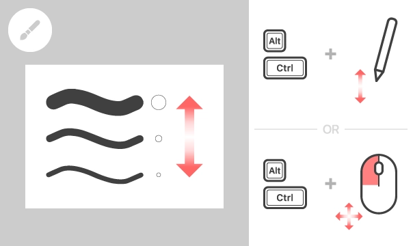 操作时,需按住 [Alt 键] 与 [Ctrl 键] ,然后拖动笔。要是使用鼠标,那么在按住 [Alt 键] 、 [Ctrl 键] 以及鼠标左键的状态下,移动鼠标即可。