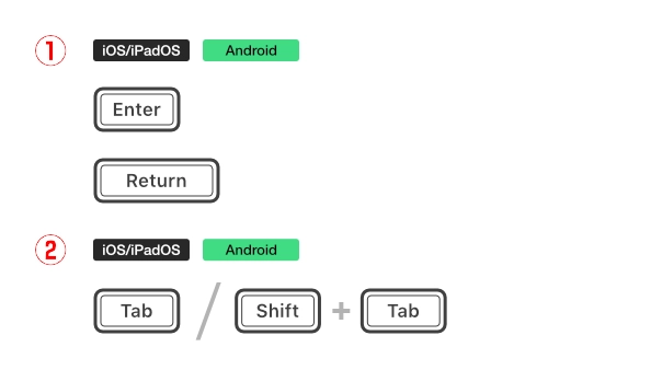 在运行iOS 14.0及更高版本的iPhone、运行iPadOS 14.0及更高版本的iPad,以及Android设备上,若连接了蓝牙或USB键盘,便可使用键盘快捷键。