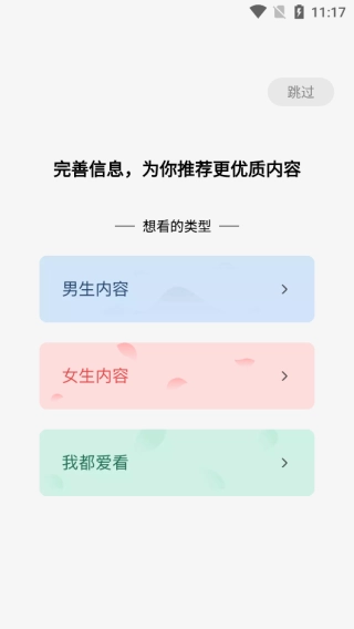 1. 下载并安装软件后进入,挑选自己想看的类型。