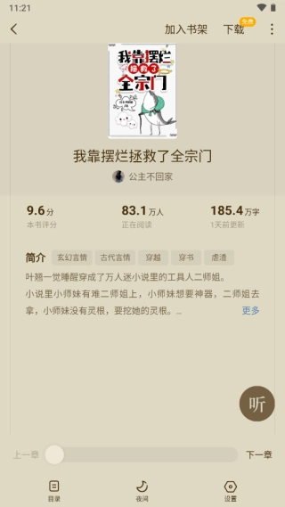 2、【流畅体验】具备操作简便的特点,同时支持本地阅读、边听边读、自动阅读以及夜间模式等功能,为你带来纯净的体验。