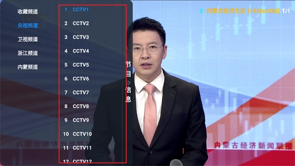 2、点击屏幕,左侧会弹出电视节目栏