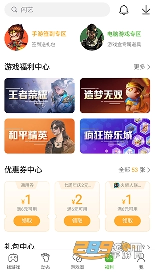 4、最后,点击“福利”,其分为手游专区和电脑专区,此处均为有关游戏的福利。