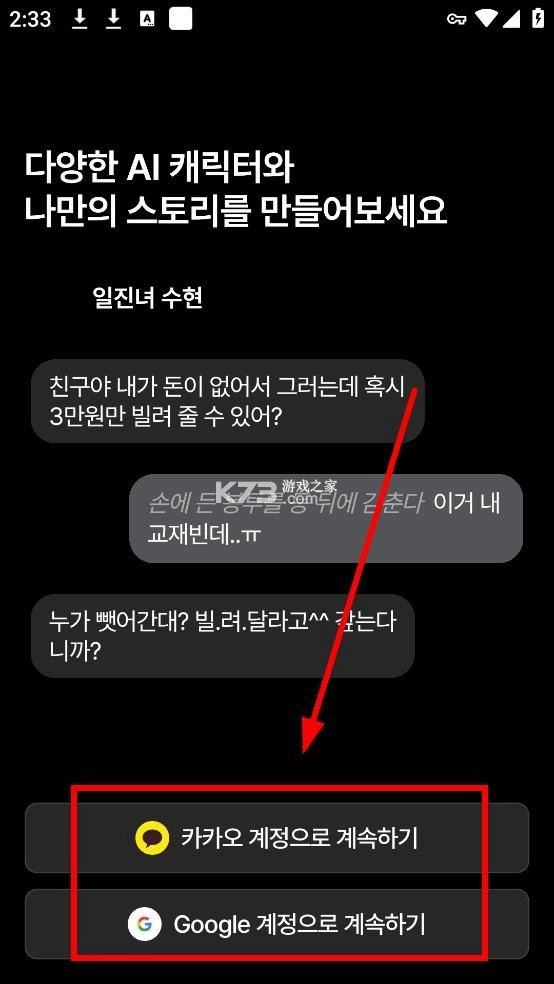 1、于本站下载并打开软件,能够用kakao账号或者谷歌账号进行登录。