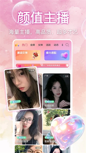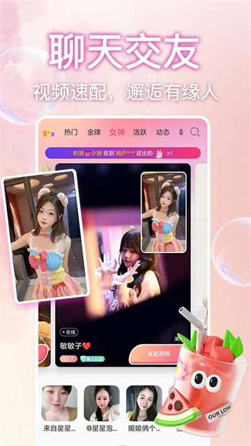 桃花秀视频聊天,专注于为年轻的陌生人迅速建立社交视频聊天联系。在这里,彻底告别照骗,让真人交友变得更为真实可信!这是一款为单身男女精心定制的多元化恋爱聊天交友平台。