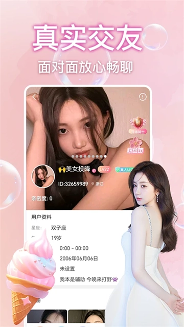 1、聊天交友:借助软件的智能匹配功能,为用户找到合适对象,实现线上互动交流与在线聊天。