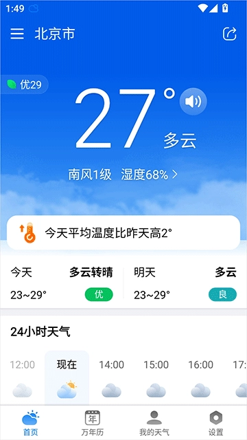 24 小时天气情况:能便捷地了解 24 小时内天气状况以及温度的起伏变化,提前做好应对早晚温差较大情况的准备。
