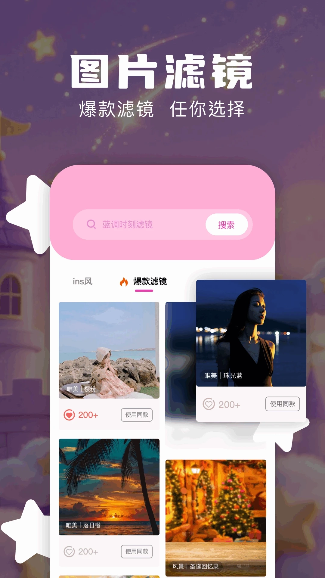 2、丰富的过滤器 丰富的过滤资源,让您一键即可改变图像颜色,让图像内容更加充实饱满。