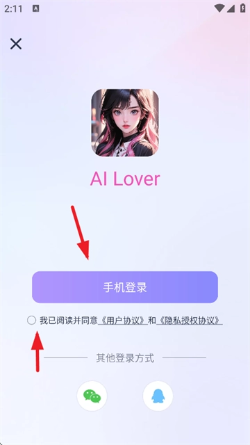 2. 点击“手机号登录”,请务必勾选《用户协议》和《隐私政策》。