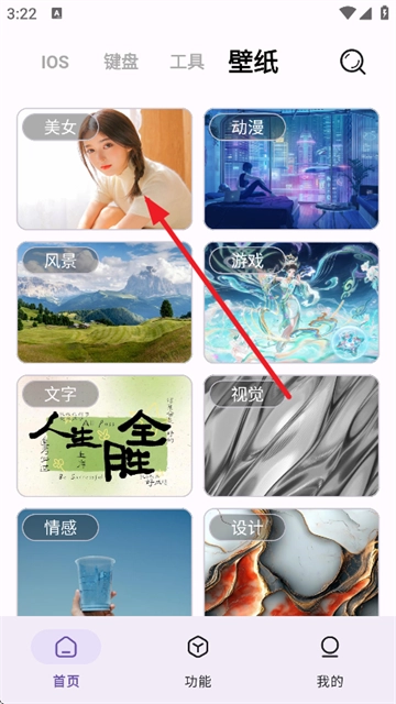 1、在首页点击壁纸