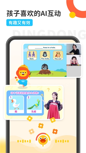 叮咚课堂,一款超实用的线上课程学习软件,专注为少儿英语领域提供优质英语课程服务。课程由专业外教在线授课,从听说读写多个维度提升孩子英语学习能力。它主打小班化教学模式,老师会依据每个孩子的特点制定专属教学方案,针对性更强。感兴趣的小伙伴们,快来加入吧!