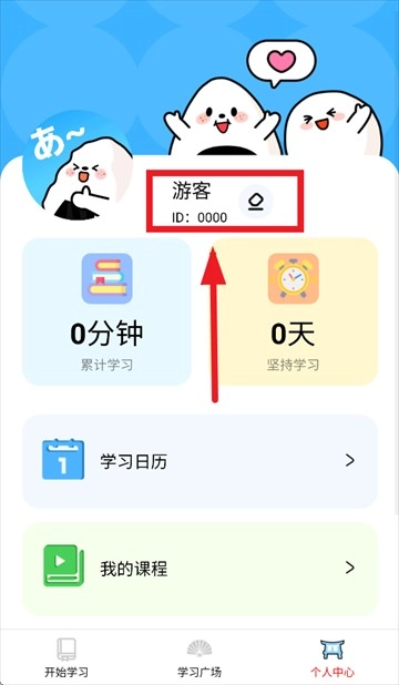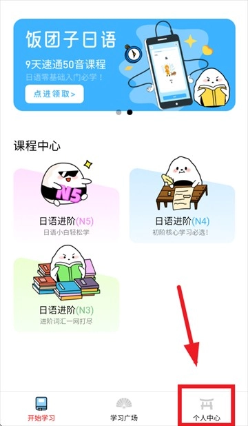 1. 下载并打开饭团子日语应用,进入应用后,点击【个人中心】。