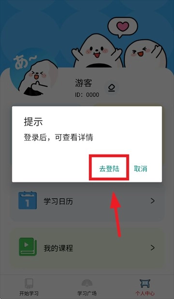 3、当弹出提示界面时,选取【去登陆】这一选项。