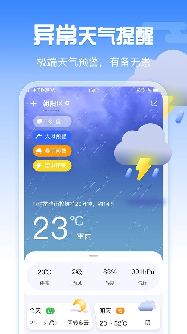 3. 超准天气能让你随时提前做好准备,使用起来更为便捷。此外,还提供一项极为简单的天气服务。