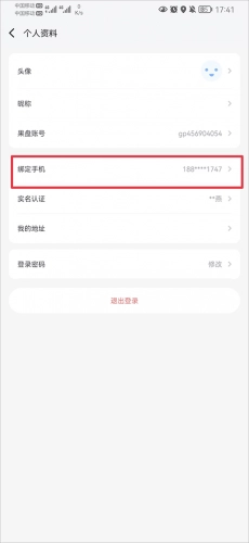 2. 在个人资料页面,点击绑定手机号。