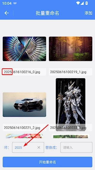 3、在输入替换字段后,即可实时预览效果,随后点击“开始重命名”,便可执行替换操作。