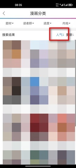 4. 进入此分类后,点击搜索结果排序,可选择【人气】或者【更新】