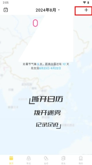 1. 进入本站的足迹首页,点击首页右上角的“+”图标。