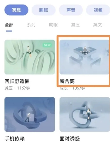 3、随后在冥想界面里找寻到【断舍离】相关内容,直接点击,就能开启播放。
