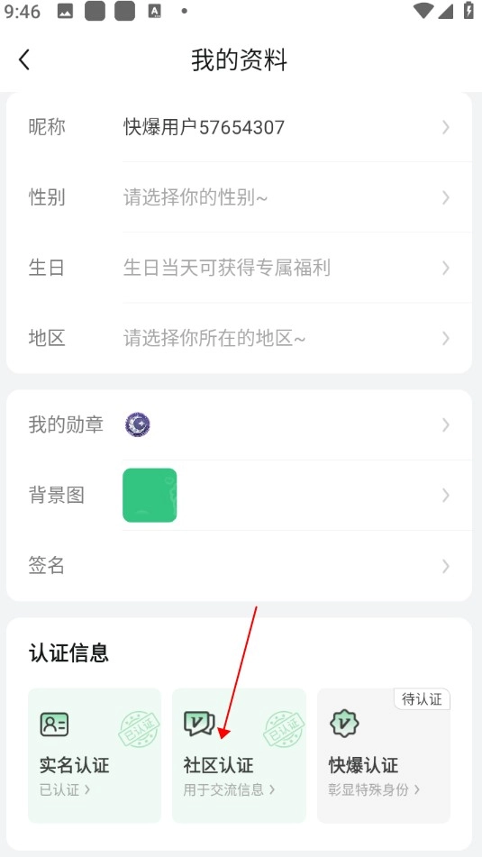 3、把页面滑动至底部,点击“社区认证”。