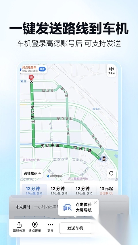 提供涵盖驾车、打车、公交、骑行、步行、货车、摩托车、新能源等各类出行方式的智能导航服务。