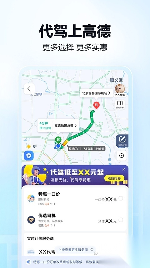 想要代驾服务?那就来高德呀!这里选择多多,实惠满满。
