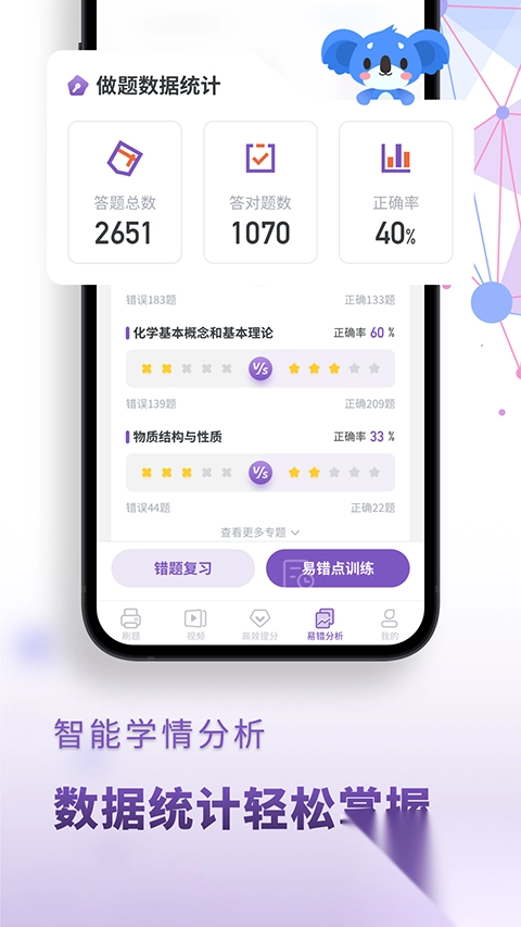2、科学分类模块助力效率提升。对易错本、笔记本、自学视频、自学音频这四大模块进行科学分类,能让你思路更清晰,刷题效率翻倍。