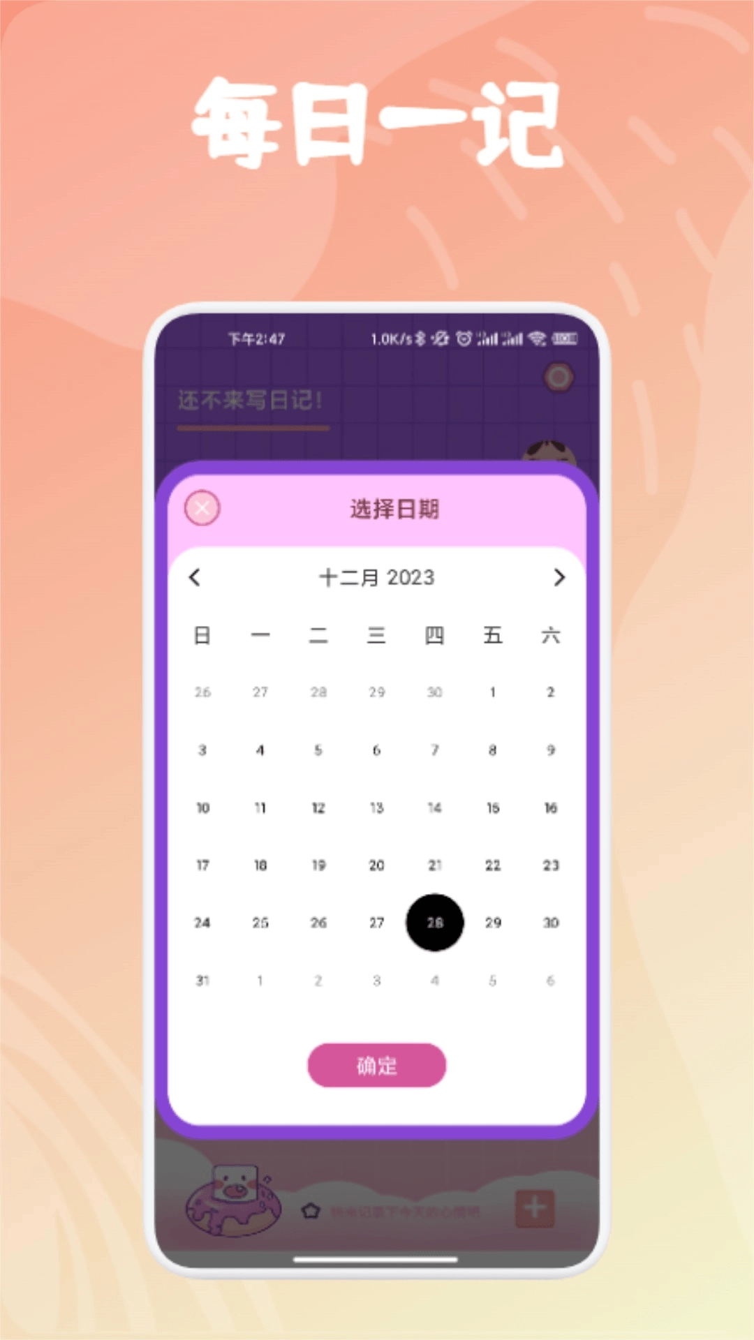 2. 挑选日记的日期,然后点击确定。