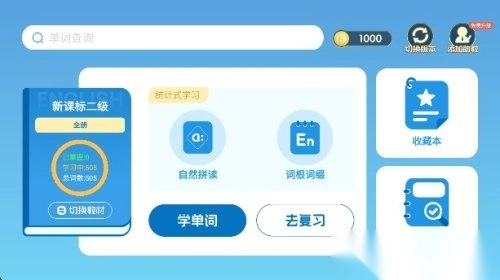 4. 点击“学单词”即可进入学习模式,在此模式下,能够依据栏目迅速切换训练方式。