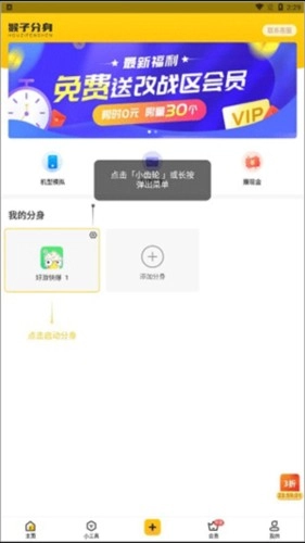 悟空分身免费版是一款非常好用的手机分身工具。该软件页面简洁、体积小巧,内含强大的功能,包括免费分身、多开分身、极简分身等功能,用户可以根据自己的需求选择使用。用户可以使用该软件进行分身,一键复制想分身的应用或者游戏,软件能够帮助用户实现多账号在线,方便用户更好的使用软件或玩游戏。为用户带来优质服务,有需要的小伙伴们快来使用吧!